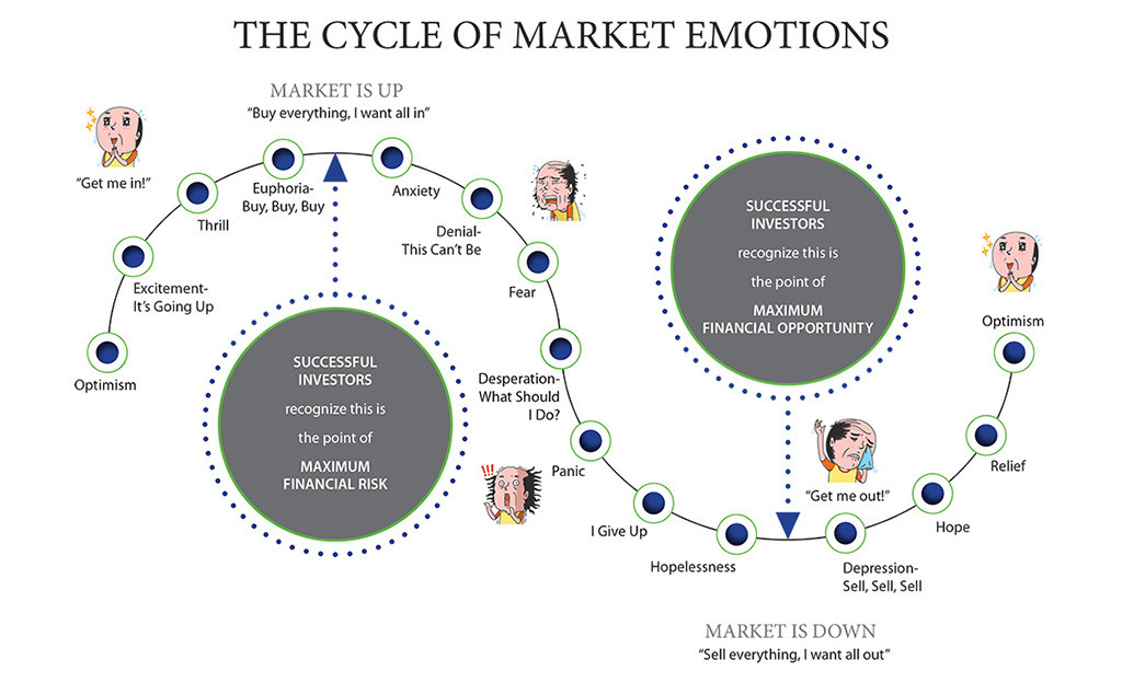 For a long-term fundamental investor, if you bought companies like Zoom, Teladoc, Mercadolibre, PayPal, or Square a year ago you should be enthusiastic about price today. They are trading at 30, 40, even 50% lower! These companies can be bought cheaper today with the fundamentals about the same today, if not better. It is important to understand the cycles of market emotions. We are closer to maximum financial opportunity than maximum financial risk. At this time last year market sentiment was about euphoria. You sell during those cycles to build your cash position, which is then best deployed in times like today.