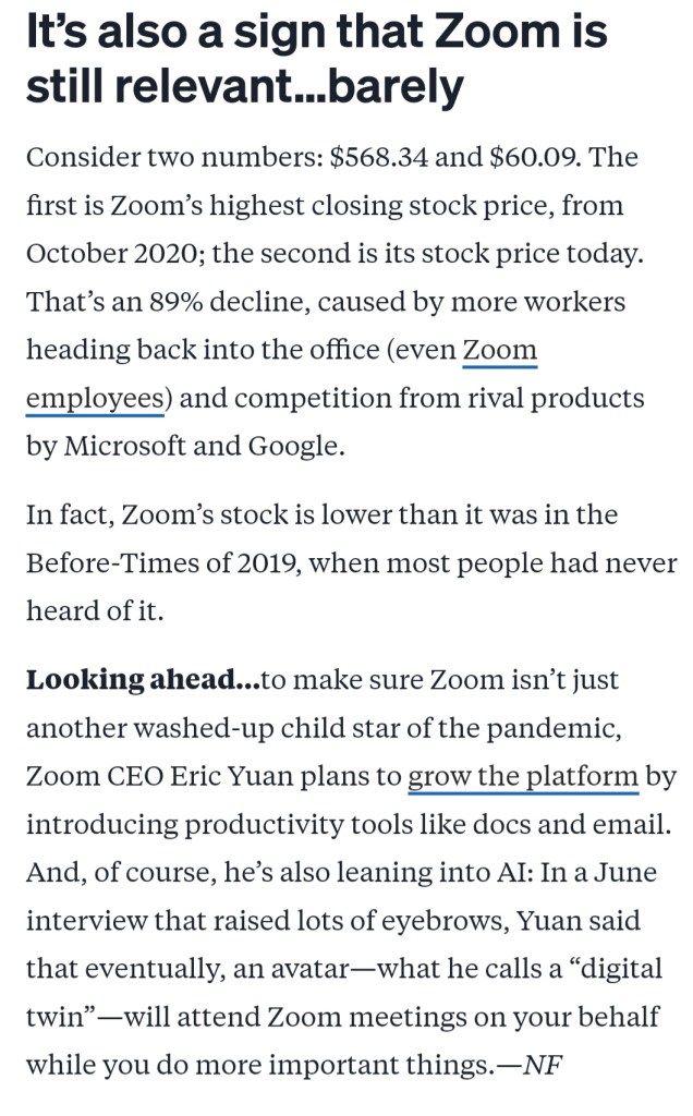 The video conferencing space is crowded, with heavy hitters who do not have the same relevance as Zoom on a consumer level.