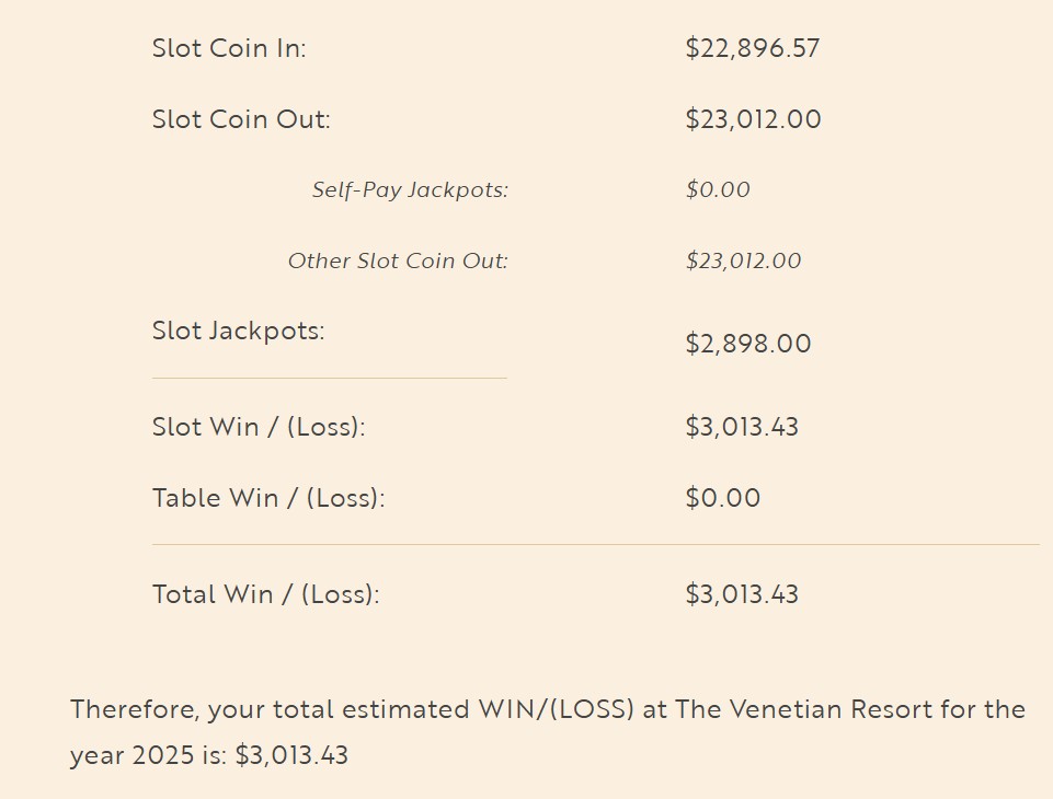 It wasn’t just about money. I was chasing dopamine hits and an escape from reality. Tying my checking account to sparkly animations or a dice roll feels absurd. My Las Vegas coin-in/coin-out statement? Humiliating. My local casino doesn’t even provide a detailed win/loss record, which only adds to the haze.